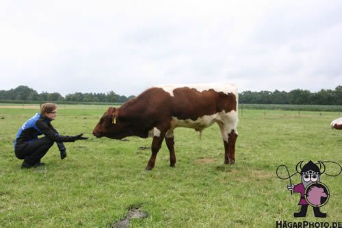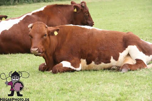 Nicht nur Islandpferde gehören zum Hägarhof sondern auch Rinder – und zwar ganz besondere: Mine, Else, Lieschen, Rosi und Josefine sind Pinzgauer. Der Name leitet sich vom Salzburger Bezirk „Pinzgau“ ab. Die typische Farbzeichnung mit der kastanienbraunen Grundfarbe und der Weißzeichnung an Rücken, Kreuz und Bauch sowie an den Vorderarmen und Unterschenkeln ist ihr Markenzeichen: Vielen gilt sie als schönste Rinderrasse der Welt.