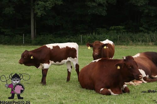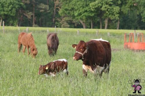 Auf dem Hägarhof leben die Rinder das ganze Jahr über in artgerechter Herden- und Auslaufhaltung mit Stier und Kälbern. Im Sommer grasen sie ganztägig auf den umliegenden Weiden, teilweise mit den Pferden zusammen. Den Winter verbringen die Tiere im Auslauf mit Stroh. Verfüttert wird dann nur die hofeigene Grassilage. Natürlich haben unsere Rinder das ganze Jahr über Minerallecksteine zur Verfügung.